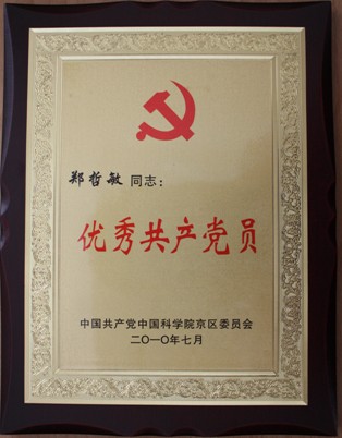 在中国共产党成立89周年之际,我所郑哲敏同志被京区党委授予“优秀共产党员”的称号。