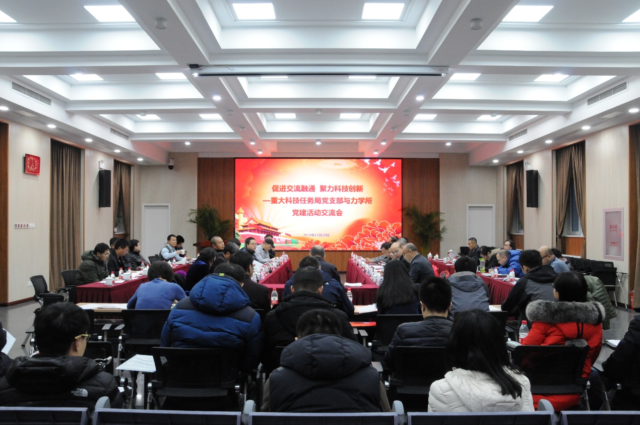 12月20日,中国科学院重大科技任务局党支部、力学研究所党委以“促进交流融通聚力科技创新”为主题开展联学共建交流活动。中科院副院长、党组成员相里斌,重大任务局党支部全体党员,力学所领导班子成员、党委委员、职能部门和高温气动党支部部分党员参加活动。活动由力学所党委书记、副所长刘桂菊主持。