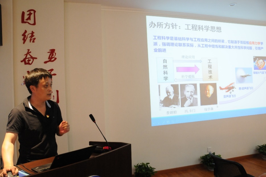 参观结束后,魏炳忱向大家简单介绍了力学所的基本情况,以及力学所近期的科研布局及代表性科研成果,同时还向大家介绍了力学所纪监审工作开展情况。
