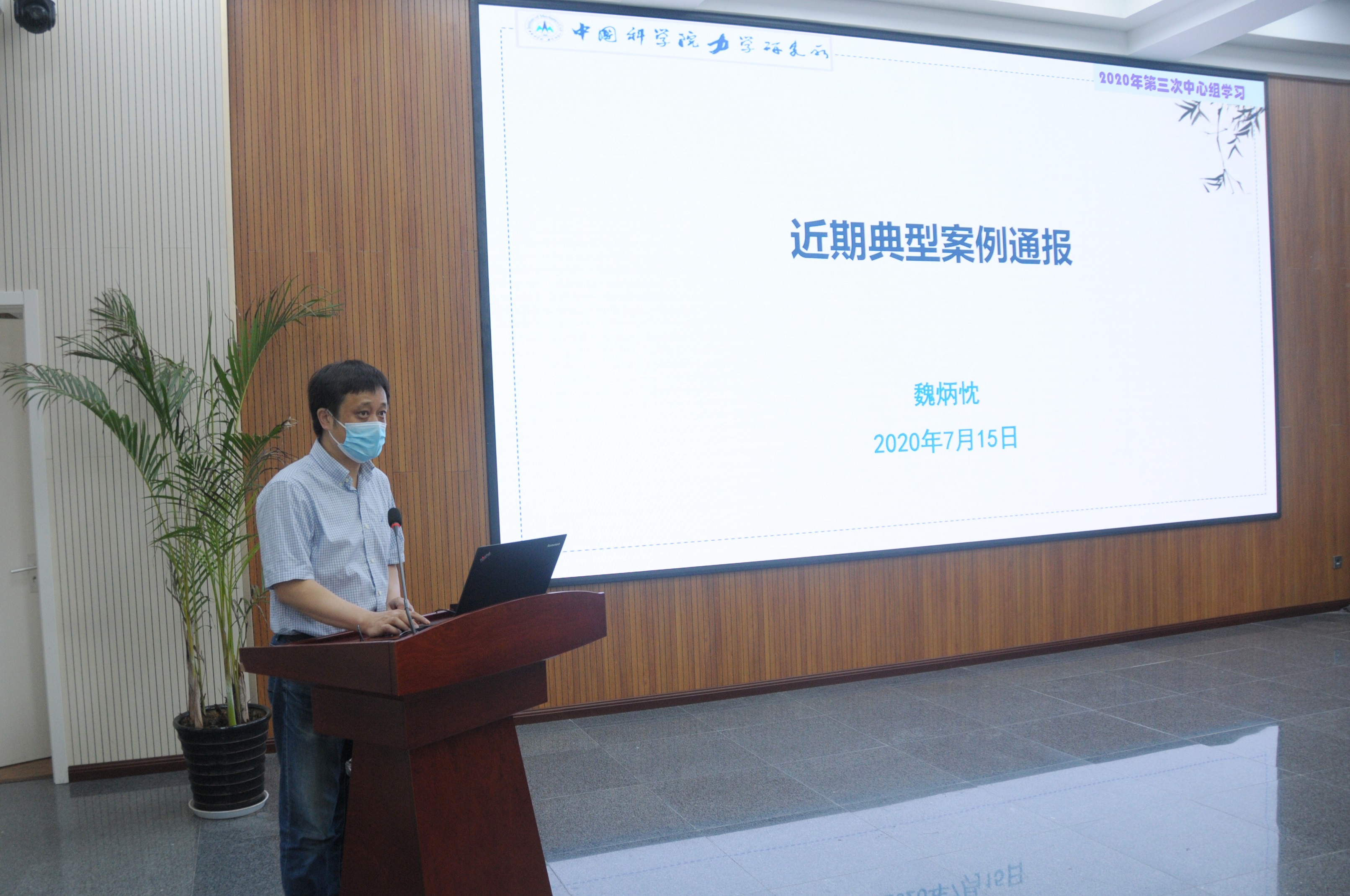魏炳忱作《近期典型案例通报》主题发言。首先向大家通报了中央纪委国家监委上半年审查调查和党纪政务处分情况,院党组近期印发的两个典型案例情况,以及开展“四风”问题专项整治的重点,并结合内审工作指出了监督整改的重点。他强调,全面从严治党永远在路上,必须坚定不移以“三不”一体理念、思路和方法推进反腐败斗争,持续深化标本兼治。要求所内各党支部、各职能部门要切实提高认识,加强提醒教育,严格审核把关,贯彻落实中央八项规定精神。