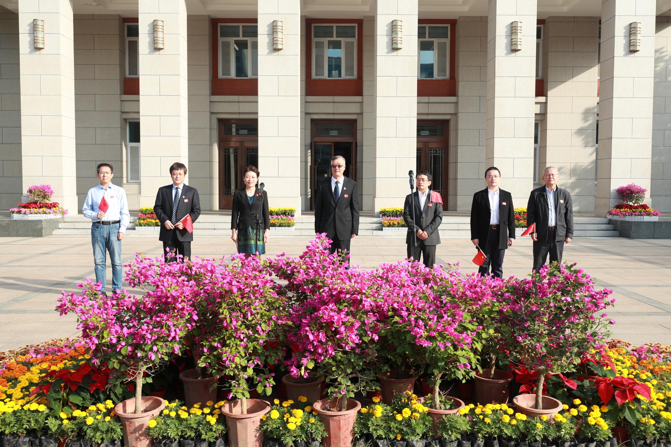 升旗仪式隆重热烈。秋日晨曦下国旗护卫队踏着整齐有力的步伐,护卫着国旗步入现场。国歌奏响,全体人员肃立向国旗行注目礼,鲜艳的五星红旗在雄壮嘹亮的国歌中冉冉升起,随风飘扬。