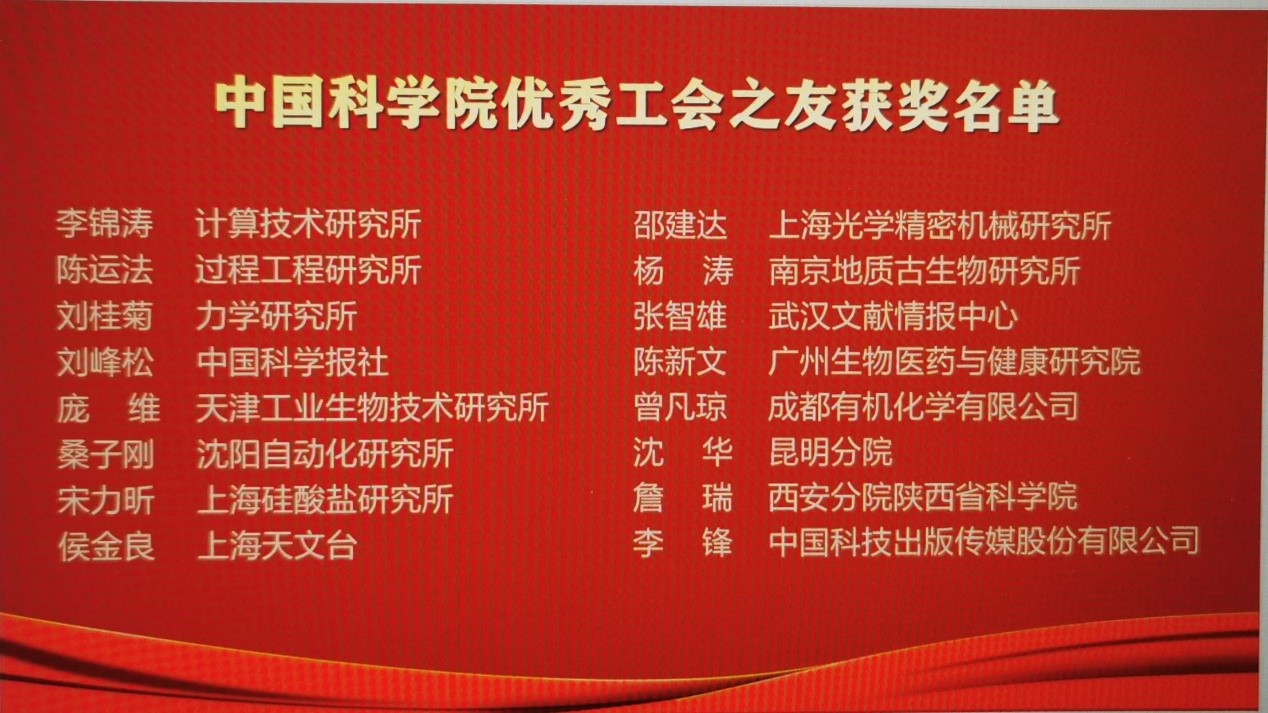 日前,在中国科学院工会2018-2020年评优活动中,我所流固耦合系统力学重点实验室分工会荣获“中国科学院模范职工小家”称号,刘桂菊同志荣获“中国科学院优秀工会之友”称号,徐丽敏同志荣获“中国科学院工会积极分子”称号。