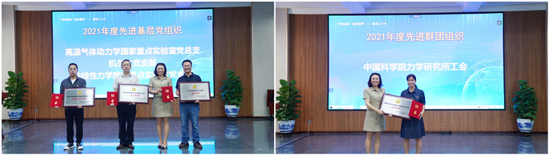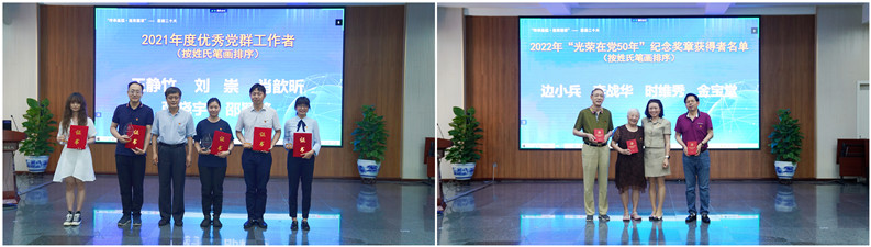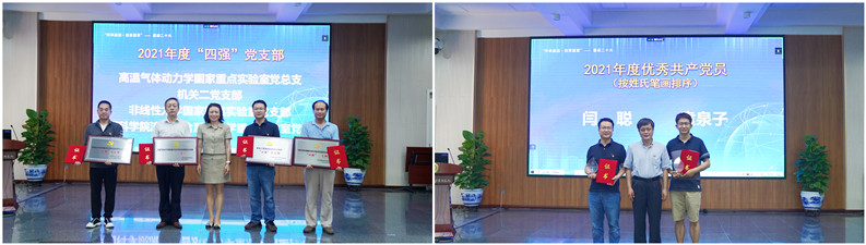 会议第二阶段,召开了“弘扬科学家精神 喜迎党的二十大”庆祝中国共产党成立101周年表彰大会,由副所长、党委委员魏炳忱主持。为深入开展“基层组织建设见成效”活动,在聚焦创新强队伍上见成效,力学所评选出26名共产党员示范岗,同时对2021年度为推动研究所科技创新、构建和谐研究所作出积极贡献的优秀个人和先进集体进行了集中表彰,包括2021年度先进基层党组织、先进群团组织、“四强”党支部、优秀共产党员和优秀党群工作者;向老党员颁发了2022年“光荣在党50年”纪念奖章。刘桂菊同志领誓,开展了新党员入党宣誓、老党员重温入党誓词活动,随后刘桂菊向新党员赠送了《中国共产党章程》及科学家精神书籍。