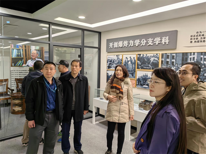 会后,党委理论学习中心组成员参观弘扬科学家精神示范基地——爆炸洞与爆炸力学,并举行了开馆仪式。基地分为“前言”“事件时间轴”“郑哲敏与爆炸力学”“郑哲敏办公室”“爆炸洞的历史”“荣誉与奖项”“传承与践行”七个篇章,总面积200平方米。基地系统阐述了力学所在爆炸力学领域取得的历史成就和重大贡献,重点讲述以郑哲敏为代表的老一辈科学家精神,激励广大科技工作者秉承老一辈科学家科技报国之志,为实现高水平科技自立自强作出应有的贡献。