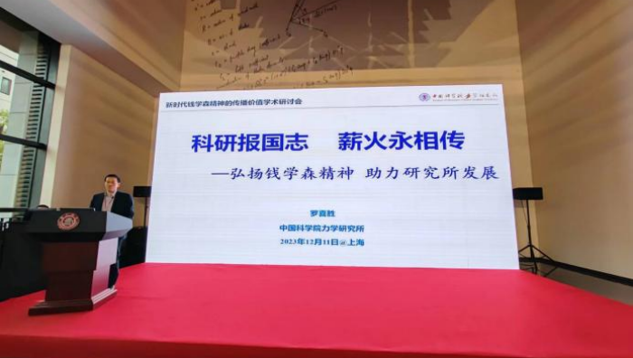 12月11日,举行了为联合体会员单位、理事单位、理事长和副理事长单位授牌仪式,随后召开“新时代钱学森精神的传播价值”学术研讨会,会上罗喜胜作了题为《科研报国志 薪火永相传——弘扬钱学森精神 助力研究所发展》的主题报告,他分析了科学传播的内涵、目的意义,从力学所的精神积淀、钱学森精神的时代价值、弘扬钱学森精神的实践几个方面,报告了力学所弘扬传播钱学森精神的具体工作和思考体会。