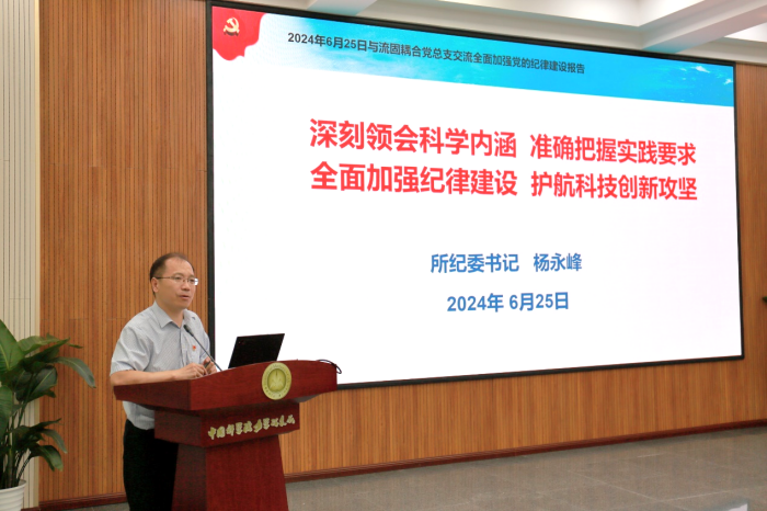 纪委书记杨永峰作题为《深刻领会科学内涵 准确把握实践要求 全面加强纪律建设 护航科技创新攻坚》的主题报告,传达学习习近平总书记关于党纪学习教育的重要论述和指示精神,带领大家深刻领会习总书记关于党的自我革命的重要思想。报告中,杨永峰结合个人党纪学习感悟与工作中的典型案例,从历史、现实及未来三个维度,全面阐述了党纪学习教育的深远意义。在全院工作来看,加强党纪学习教育和贯彻落实是确保科技创新事业健康发展的坚实基础,也是保护党员干部和科学家的切实需求。