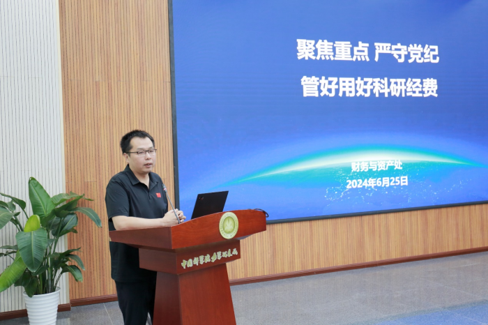 随后,纪委委员仲峰泉带领大家深入学习新修订的《中国共产党纪律处分条例》(以下简称《条例》)。党委委员、党委办公室(纪检审办)主任武佳丽作了《以案为鉴知敬畏,防微杜渐守底线》的典型案例警示教育报告。财务与资产处处长林翳聚焦于科研经费使用,作了《聚焦重点 严守党纪 管好用好科研经费》的专题报告。