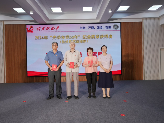 会议最后颁发了“光荣在党50年”纪念章并进行入党宣誓活动,由纪委书记杨永峰主持。王瑞芹为力学所老党员颁发了2024年“光荣在党50年”纪念章。刘桂菊带领新党员同老党员一起重温了入党誓词,并与王晓虹、罗喜胜一同向新党员赠送了《中国共产党章程》及科学家精神书籍。