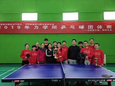 为庆祝新中国成立70周年、中科院建院70周年,所工会、所乒乓球协会组织了力学所乒乓球联赛。6个联队经过7天激烈的角逐,最终机关队获得冠军,非线性实验室喜得亚军,高温气动实验室和先进制造实验室并列第三名,流固耦合实验室和微重力-空天联队并列第四名。