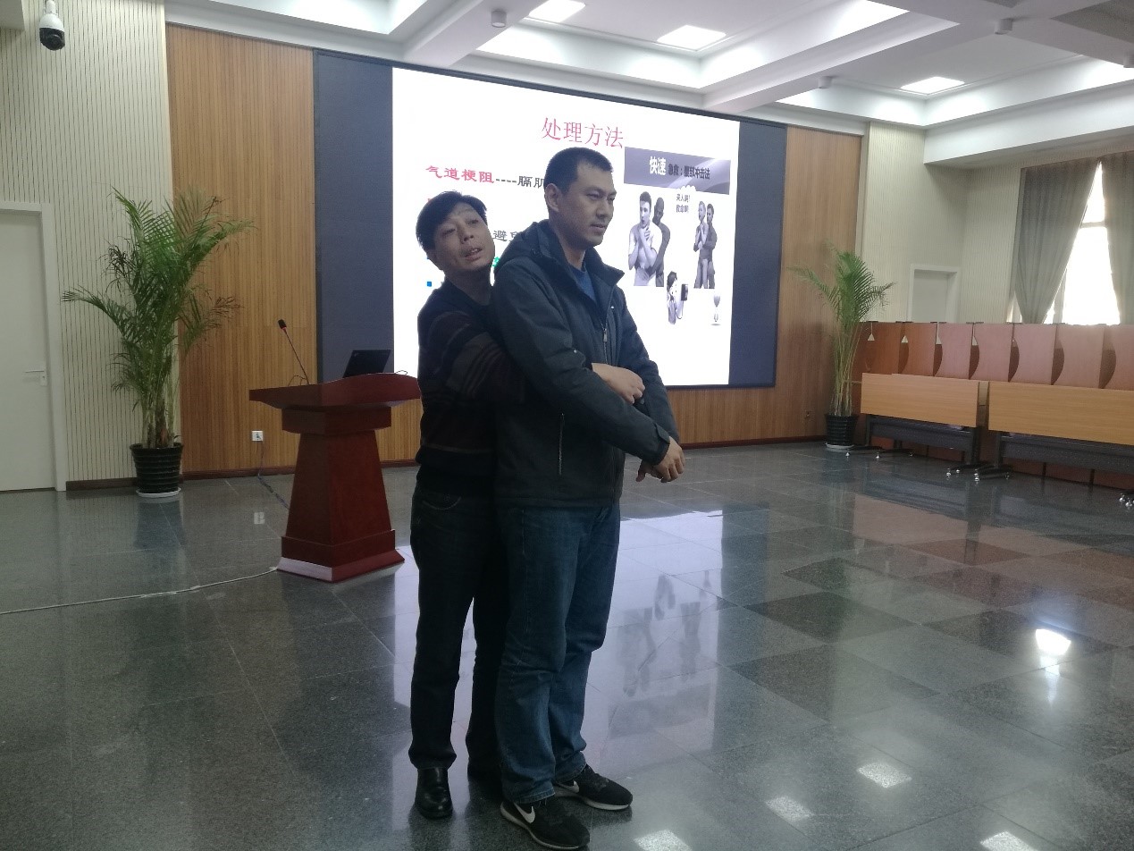 张江义就突发事件应对及相关急救技术进行了详细讲解,采用理论与实操相结合的方式,对心肺复苏、气道梗塞及除颤等急救技能进行操作示教。王红霞结合大量临床实例,通过形象生动的幻灯片展示,深入浅出地阐述了窒息、过敏、癫痫等常见病症的临场表现及应对措施。