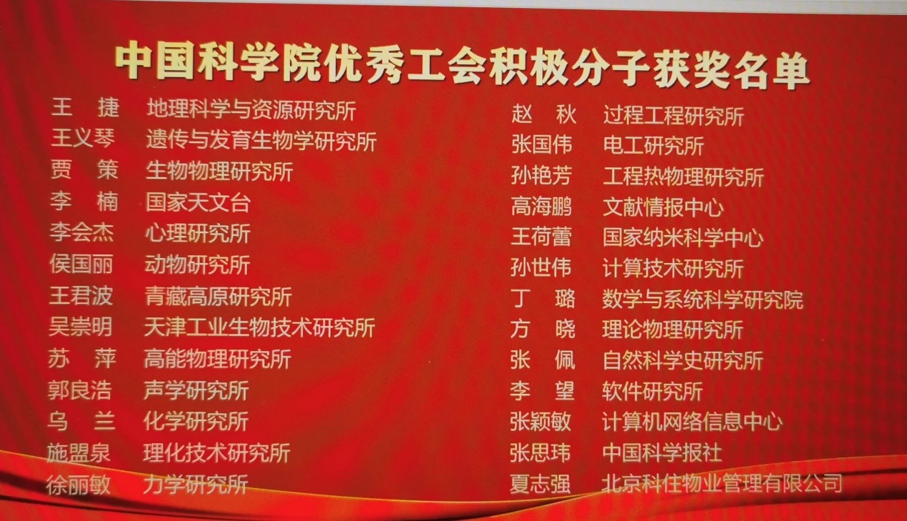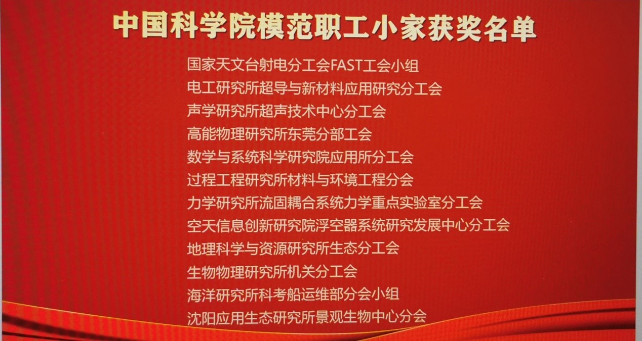 日前,在中国科学院工会2018-2020年评优活动中,我所流固耦合系统力学重点实验室分工会荣获“中国科学院模范职工小家”称号,刘桂菊同志荣获“中国科学院优秀工会之友”称号,徐丽敏同志荣获“中国科学院工会积极分子”称号。