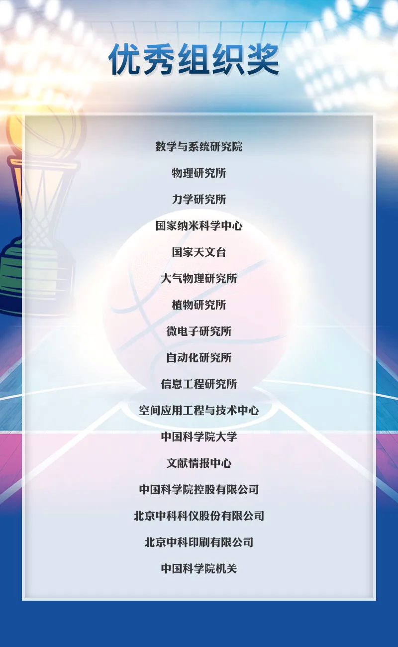 力学研究所获2024年中国科学院“科苑杯” 京区职工篮球比赛优秀组织奖