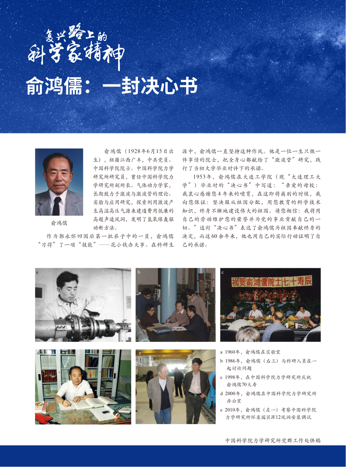 复兴路上的科学家精神——俞鸿儒:一封决心书