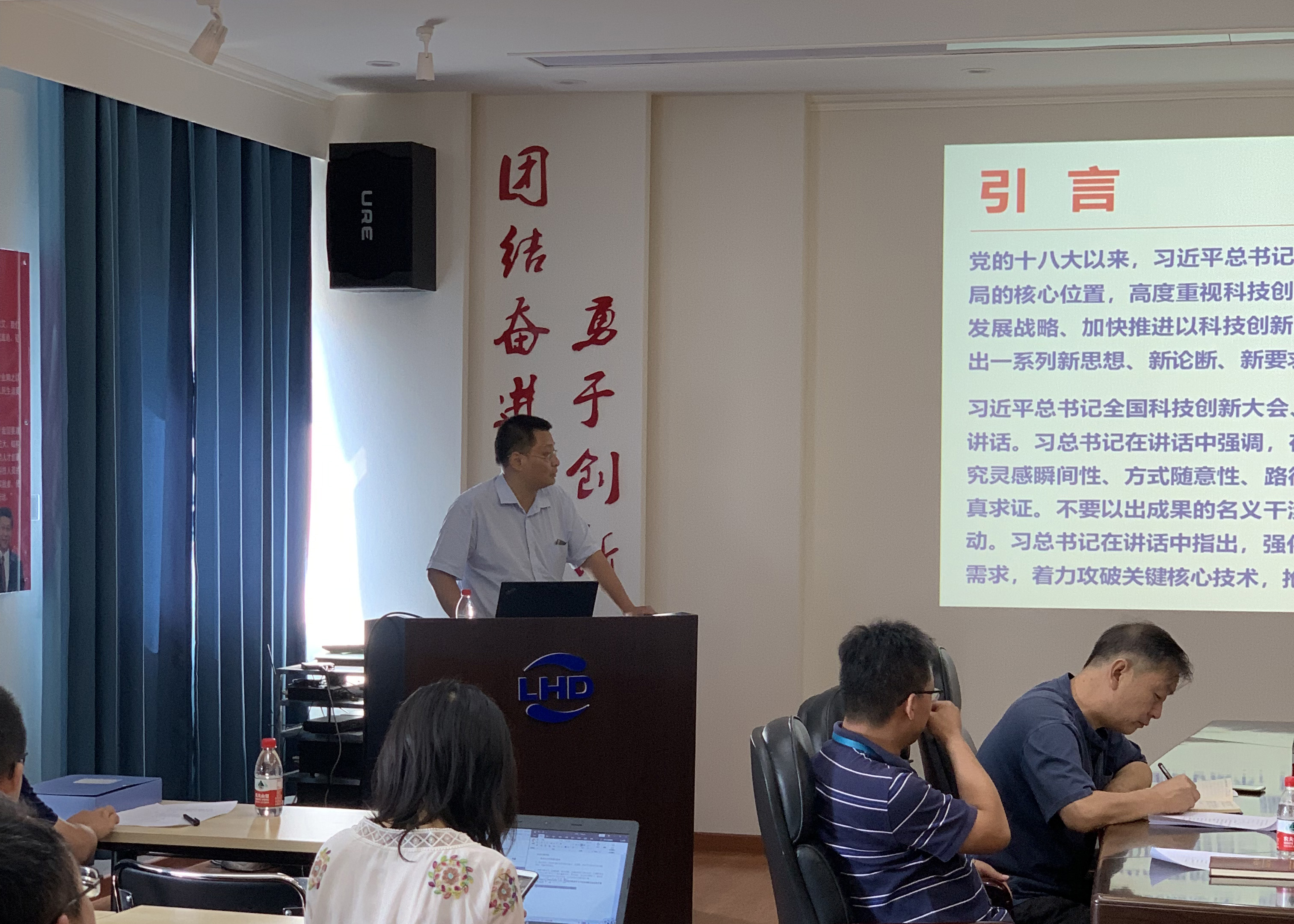 朱国立同志首先致辞。他强调开展主题教育工作应该联系实际,把创新理论和实际结合起来,找差距、抓落实。科研人员要带着问题学习,把学习和实验室的科研工作结合起来,为实验室的发展贡献力量。