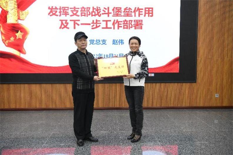 会上,刘桂菊向LHD党总支颁发了2021年度中央和国家机关工委“四强”党支部奖牌。