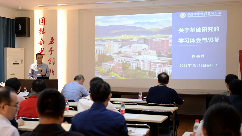 罗喜胜作了题为《关于基础研究的学习体会与思考》的主题讲座。从基础研究的内涵特征、现状分析、时代责任和发展思考等几个方面阐述了自己对于基础研究的一些理解和体会,并详细分析了力学所基础研究面临的问题和LHD的现状,提出了一些富有建设性和针对性的基础研究发展思路,例如搭建基础研究平台与特区、发挥科教融合优势等。