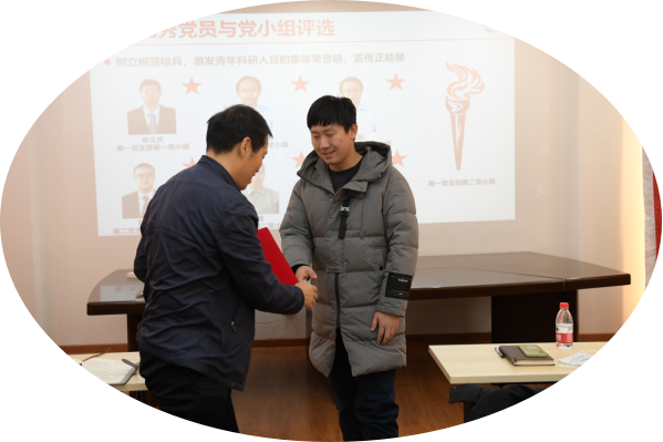 随后会议表彰了LHD党总支年度先进个人和党小组。赵伟现场宣读了颁奖词,罗喜胜为申义庆、张仕忠、陆阳、张启帆、蒋建政和陈梦珠6位实验室优秀共产党员以及第一党支部第二党小组颁发了奖状。