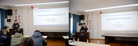 青年科研骨干梁煜、孟宝清分别作学术报告。梁煜分享了“高速流体界面失稳与混合机理研究进展”,介绍了团队在惯性约束核聚变、暴风发动机相关领域的研究想法与创新成果;孟宝清汇报了“可压缩多相流模拟方法的最新研究进展”,展示了在多相含颗粒流动模拟方法、多相多尺度模拟方法等方面的进展和应用前景。这些青年学术报告代表了LHD科研方向新的增长点、体现了实验室在引起和培养青年科研人员、鼓励青年人结合实验室主攻方向开展创新型研究的成绩。