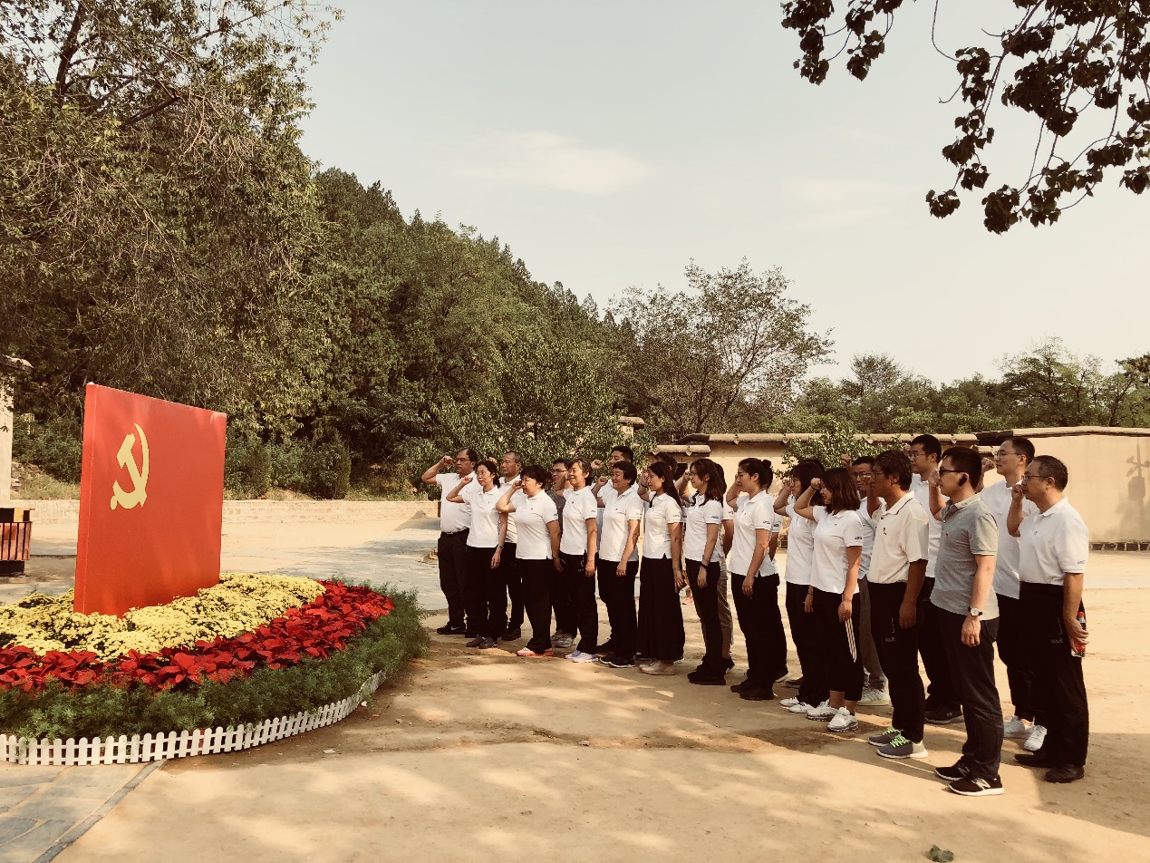 接着,大家来到西柏坡纪念馆前的五大书记铜像,支部在此举行了唱国歌、向五大书记敬献花篮和重温入党誓词仪式,活动简短但极其庄严肃穆。通过简短的仪式,极大地激发了党员同志的爱国热情和荣誉感。