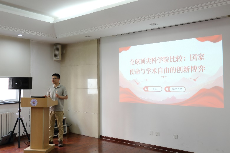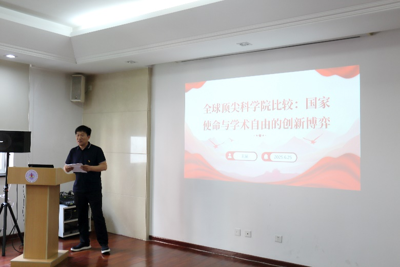 党总支书记王展作题为《全球顶尖科学院比较:国家使命与学术自由的创新博弈》的党课。他系统梳理了中国科学院、德国马普学会、法国CNRS以及日本理研的发展历程、使命定位、组织架构及运行机制,分析了顶尖科学院的发展现状与面临挑战,突出了不同机构在科研与产业、政治、人文等多个方面上的融合差异,指出如何在发挥建制化科研的同时保持创新活力是当前面临的主要问题。林翳结合中央八项规定精神及我所科研经费使用情况,聚焦我院审计、巡视中的高发问题,梳理相关案例并进行了政策宣贯,表示应严厉杜绝超标准接待、超范围报销等行为,确保科研经费安全支出。党委委员赵伟强调了贯彻落实中央八项规定精神的重要性,解读了党政机关厉行节约反对浪费条例,带领大家学习了整治违规吃喝问题的教育视频,倡导了低碳和健康文明生活方式,鼓励大家保持艰苦奋斗本色,坚持勤俭节约作风。