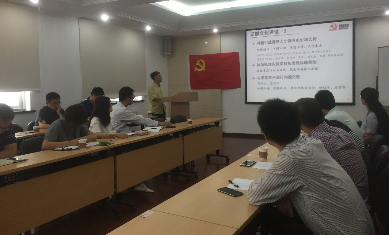 武晓雷书记作了主题为《学习习近平总书记关于科技工作者重要讲话》的党课报告。“从邓稼先‘中国青春’的榜样”,“幸福都是奋斗出来的”,“把论文写在祖国的大地上”三个方面带领大家学习了习近平总书记关于科技工作者的重要讲话,并谈了自己学习的心得体会,引起了支部党员们的共鸣和讨论,为全体支部党员上了一堂接地气的党课。