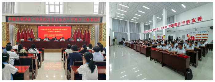 中国力学学会党委委员、力学所学会办公室党支部书记汤亚南与盐池县科协主席范庭山交接了捐赠牌。中国科学院力学研究所微重力实验室党支部书记姜恒研究员和中国力学学会女科技工作者委员会秘书长邵丽华教授为学生代表捐赠了科普图书和学习用品。