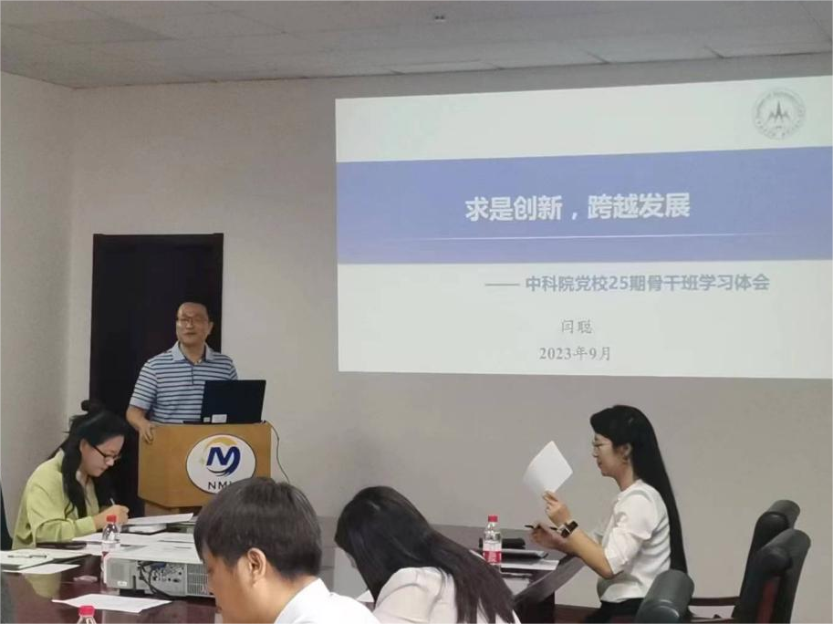 会上,分管党支部的党委委员闫聪作了题为“求是创新,跨越发展”的党课报告,就参加中国科学院党校25期骨干班课程分享了学习体会。