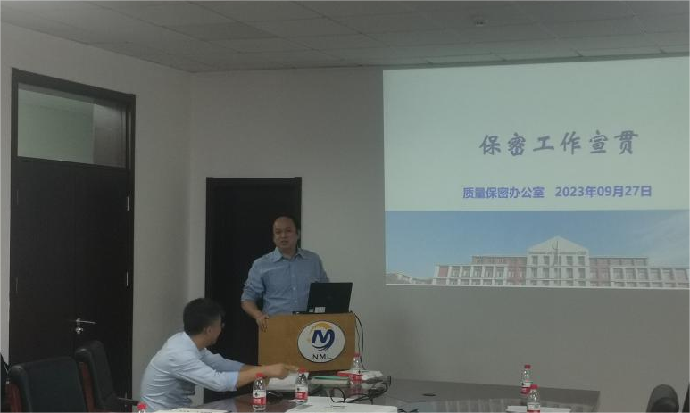 质量保密办公室主任刘宏立进行了保密宣贯。报告指出,大家要切实肩负起新时代保密工作的职责使命,为科研工作正常进行保驾护航。