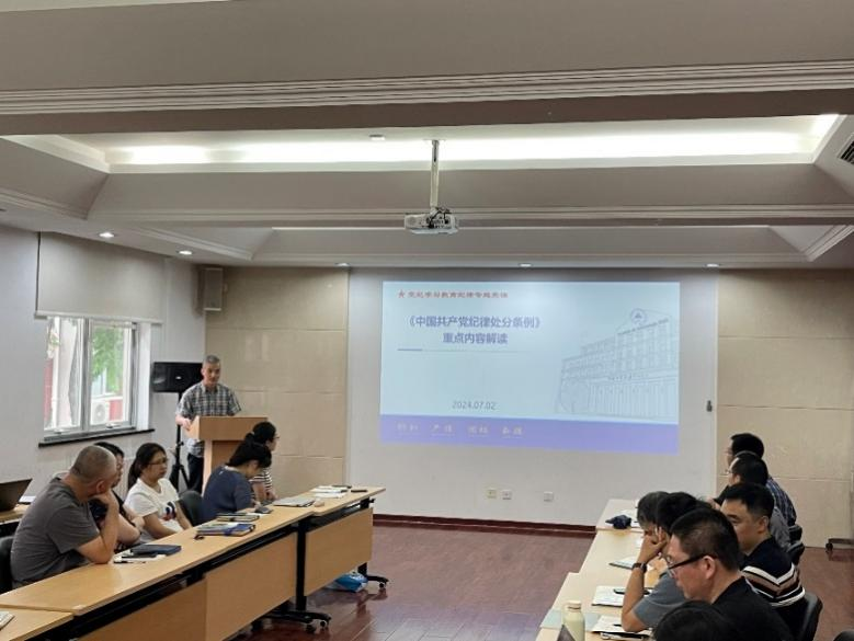 林翳作了题为《聚焦重点 严守党纪 管好用好科研经费》的报告,科技处杨云潇就颠覆性技术创新重点专项申报政策进行了宣讲。肖歆昕讲了纪律党课,结合《条例》进一步强调了党纪学习的重要性,要求支部党员学懂学深《条例》相关规定,并在日常生活中以身作则、严格遵守。