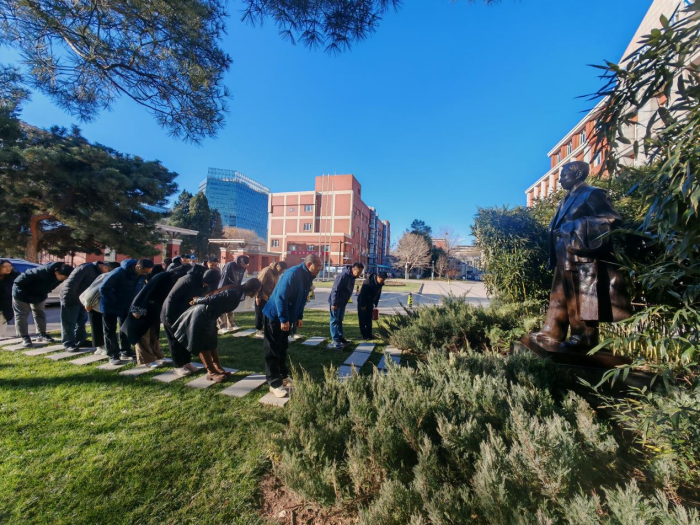 202412月5日,是力学所原常务副所长、“两弹一星”元勋郭永怀先生牺牲56周年纪念日。为缅怀郭永怀先生敬业奉献、以身报国的精神,郭永怀集智攻关尖刀连牵头举行了郭永怀先生纪念活动。党委委员、所务委员、尖刀连队长闫聪,党委委员杨国伟,党委委员、党办主任武佳丽,高技术处处长李溪以及尖刀连队员代表等20余人参加活动。参与人员分别在钱学森先生和郭永怀先生塑像前献花,并以三鞠躬致敬。