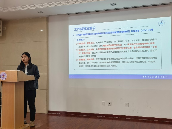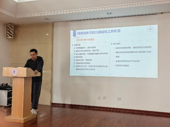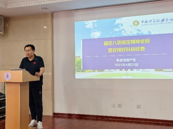 随后,会议重点开展了深入贯彻中央八项规定精神学习教育、“三项制度”以及研究所重点工作任务宣讲。财务与资产处处长林翳作《锚定八项规定精神坐标,管好用好科研经费》报告。报告通过结合中央八项规定精神和我所科研经费使用情况,聚焦我院审计、巡视中的高发问题,梳理案例进行政策宣贯。人力资源处苑旭泽围绕兼职管理、在职创办企业以及考勤管理等方面政策进行宣贯,介绍了相关工作推进情况以及后续工作计划。科技处张玲芳宣贯了《中国科学院加强和改进院属单位科研项目申报管理的指导意见》和《力学研究所科研项目申报管理实施细则(试行)》。综合处副处长王娜详细讲解了《办公及实验用房管理办法》和《安居房管理办法》,对房产资源配置标准、使用规范和申请流程进行了全面说明。质量保密办公室主任刘宏立作保密工作专题报告,提醒全所职工进一步增强保密意识,坚持“涉密不上网、上网不涉密”,同时强调涉密人员务必警惕个人隐私泄露,注重保护个人信息安全。科技合作与能力建设处曹箭详细介绍了新成立部门的主要职责、定位以及人员分工。交流环节,与会人员就深入贯彻中央八项规定精神学习教育和“三项制度”展开了热烈的讨论,并纷纷表示要切实抓好相关制度落地,以严格的规章纪律保障加快抢占科技制高点。