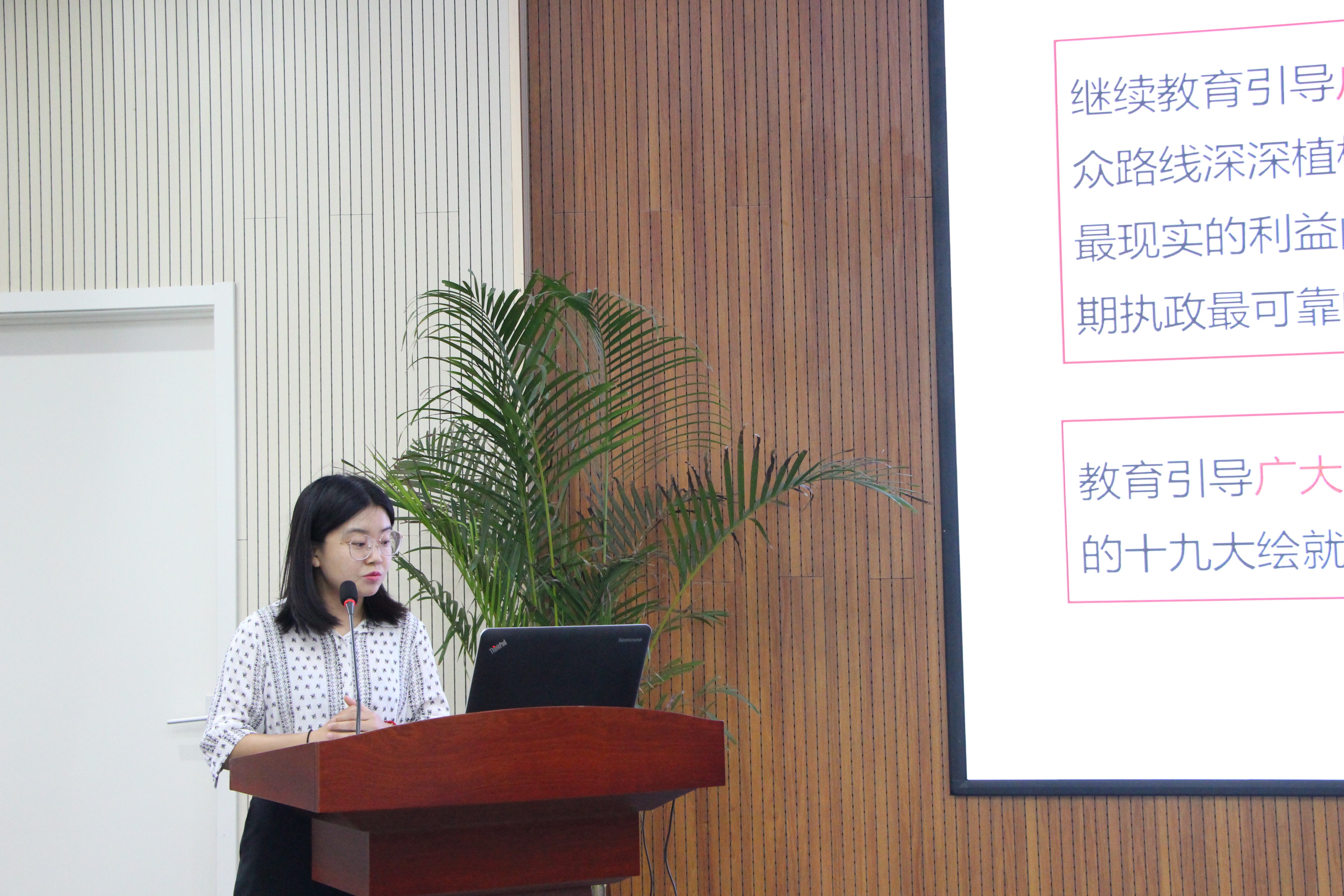 会上,姚永芳围绕“不忘初心、牢记使命”的主题同与会党员进行了交流。她以中国共产党“为中国人民谋幸福,为中华民族谋复兴”的初心为切入点,分享了几个不同群体的初心。表示研究生应该践行科技报国的初心和使命,要树立胸怀祖国、服务人民的远大理想,要有追求真理、敢为人先的坚定信念。随后同大家分享了张富清、王振美等优秀党员的故事,这些老党员用无私奉献、坚定报国的行动回答了什么是不忘初心。最后,结合自己在中共中央党史和文献研究院的实习经历,讲述了中央和国家机关优秀驻村第一书记们的感人事迹。他们在发展相对滞后的农村,扎根基层、做实事,将个人价值融入到社会建设中,他们的初心便是做村民致富的带头人,做环境治理的第一人。她建议大家阅读《青年知青岁月》、《梁家河》、《习近平谈治国理政》等,从系统的理论中更加深刻的理解党的性质宗旨,去思考初心、坚守初心。