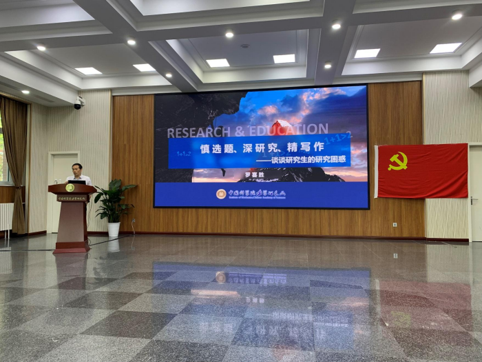 首先,罗喜胜应党员同学们的邀请,以“慎选题、深研究、精写作——谈谈研究生的研究困惑”为题,为研究生作了精彩的报告。在选题方面,报告深入地介绍了选题的重要性,常见的选题方式等,并与同学们交流了对于追求科研热点的认识。在做好科学研究方面,报告首先引导学生寻找科研的心理状态,鼓励学生养成自我驱动的习惯,介绍研究生应该具备的科研能力,并结合本人的科研实际,指导学生们如何从一个具体的研究问题逐渐扩展到系统研究;在写文章方面,报告介绍了撰写科技论文的前期准备,论文框架,每个部分的作用,逻辑的重要性等内容,并介绍了写好文章的几点感受,鼓励同学们精读好文献,提升科研品味,精心打磨文章,同时也表示完成比完美更重要。报告中,他鼓励同学们学会提出问题,敢于做“从无到0”的研究,要发挥自身的优势,主动沟通和交流,遇到逆境要调整好心态和状态。在场的研究生收获丰硕,受益良多。