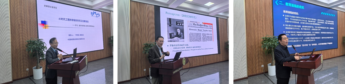 在主题报告环节,力学所分会理事李世海研究员、中国科学院大学人工智能学院缪青海副教授、国杰研究院教育创新咨询研究部李建革执行主任分别围绕“AI时代工程科学家的作用与创新”“人工智能演进与钱学森思想启示”及“钱学森大成智慧教育实践”作专题报告。