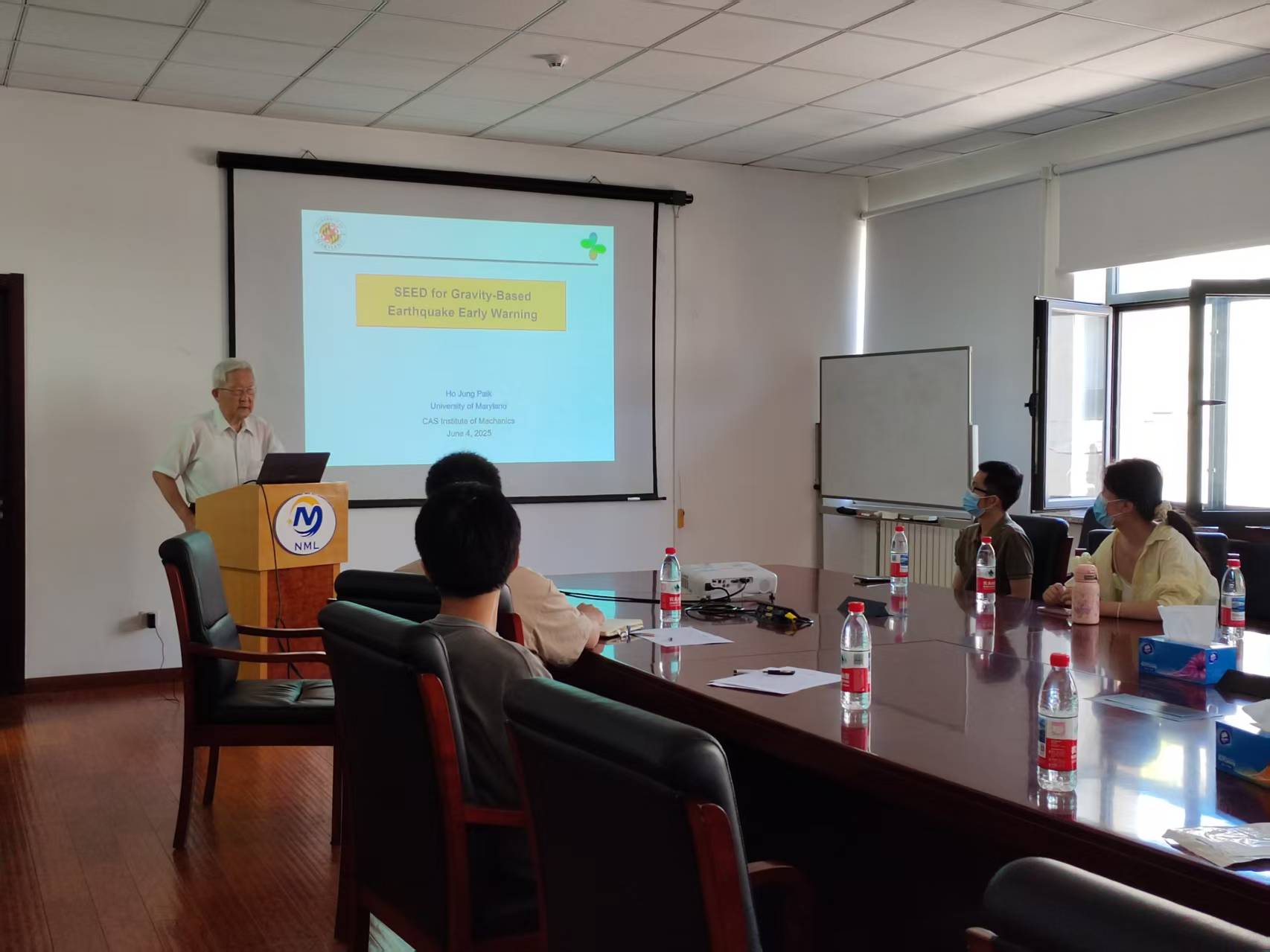 Paik教授来访期间,详细介绍了他提出的基于引力梯度信号瞬时探测地震事件的SEED计划和旨在填补现有引力波探测计划中频探测能力空白的LANGO计划,阐述了其重要社会价值和科学意义,为参会人员带来了全新的思路和方法。Paik教授还为力学所怀柔园区科研人员和研究生讲授了6个课时的引力实验课程,与引力波实验中心广大师生开展了多次座谈活动,参观了引力波实验中心怀柔实验室,对实验室工作给予高度评价,并提出了宝贵意见。