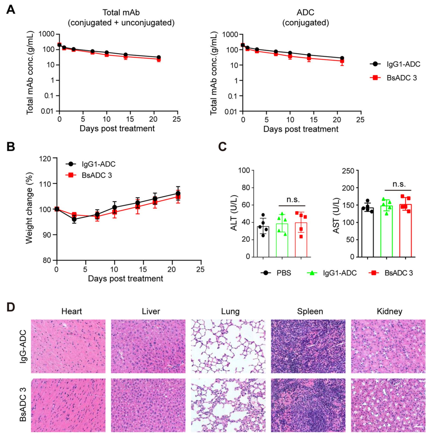 图1 EpCAM×CLDN3双特异性抗体药物偶联物的体内药代动力学及安全性研究