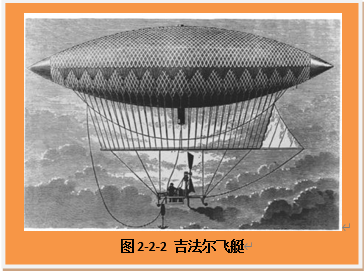 当然,最初的飞艇可不是这个样子的。一对法国人——罗伯特兄弟,他们在1784年制造了人类第一艘人力飞艇,飞行了7个小时,由7个人划桨来提供动力。到了十九世纪中叶,欧洲相继发明了蒸汽机、内燃机、电动机以后,法国工程师吉法尔设计的飞艇上由悬吊在下面的蒸汽机提供动力,在软气囊下面还有一个三角型风帆来操纵飞行方向。1852年9月24日,这艘飞艇在巴黎郊区试飞,在28千米以外的地方着陆,速度约每小时8千米。由于没有考虑操纵问题,飞艇不能返回起飞地点着陆。