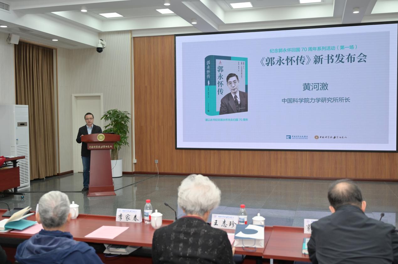 2026年4月3日,中国科学院力学研究所(以下简称力学所)纪念“两弹一星”元勋、力学所前副所长郭永怀回国70周年系列活动首场——《郭永怀传》新书发布会在力学所举行。力学所李家春院士、所长黄河激,党委委员、纪委书记李强,以及力学所青年科研人员,研究生,离退休老同志等参加活动。