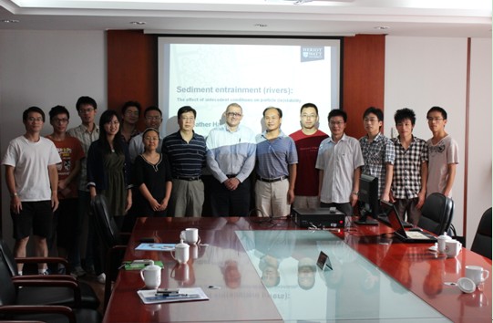 访问期间,Pender教授较详细介绍了Heriot Watt大学Built Environment学院的研究团队,研究活动以及当前的研究工作,并做了题为“Sediment entrainment(rivers):The effect of antecedent conditions on particle (in)stability”的学术报告,重点介绍了antecedent flow对泥沙稳定性的作用,并就相关问题与环境力学重点实验室的部分师生进行了充分讨论。