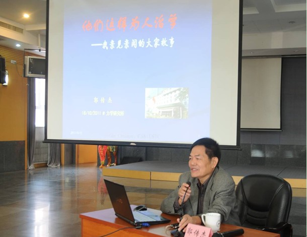 作为纪念首任所长钱学森百年诞辰系列活动之一,10月18日上午,力学所举办专题报告会,邀请中科院原党组副书记郭传杰做题为《他们这样为人治学——我亲见亲闻的大家故事》的专题讲座。力学所所长樊菁、党委书记乔均录、副所长黄晨光、戴兰宏、杨亚政;所党委委员、纪委委员、实验室(中心)主任、副主任、机关各处(室)正副处长、党支部委员、职代会常设主席团成员、工青妇研成员以及职工、研究生、离退休同志等100余人听取了报告。报告会由乔均录主持。