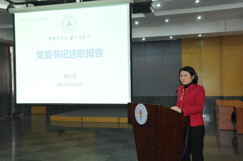 刘桂菊对力学所2016年党建工作进行了全面总结。一是抓制度,党建工作有条不紊。建立健全党委工作制度,扎实开展“两学一做”学习教育,作风与廉政建设常抓不懈,日常工作规范讲实效。二是抓文化,全所上下协力奋进。协调60周年所庆系列活动,宣扬研究所优良文化;创新方式方法,创办党刊《协力》搭建平台传播正能量;传承科学精神,创办郑哲敏先生与青年人沙龙系列活动,引导年轻人成长;深入基层,引导敢于乐于交流与合作的氛围。三是抓学习,能力效率同步提升。抓个人学习,提升党性修养和业务能力;抓党员学习,提升能力水平与效率。四是抓业务,科研党建紧密结合。大力推进科技创新工作,并促进党建工作与科研工作的结合,有效促进“三重大”成果的产出。在院党组和京区党委的领导下,在全所党员共同努力下,力学所党建工作取得良好成绩,荣获中科院京区2016年度党建创新一等奖。此外,她还结合实际工作谈了收获、体会与不足,并对2017年的工作进行了展望。报告结束后,与会党员对党委书记进行了现场评议。