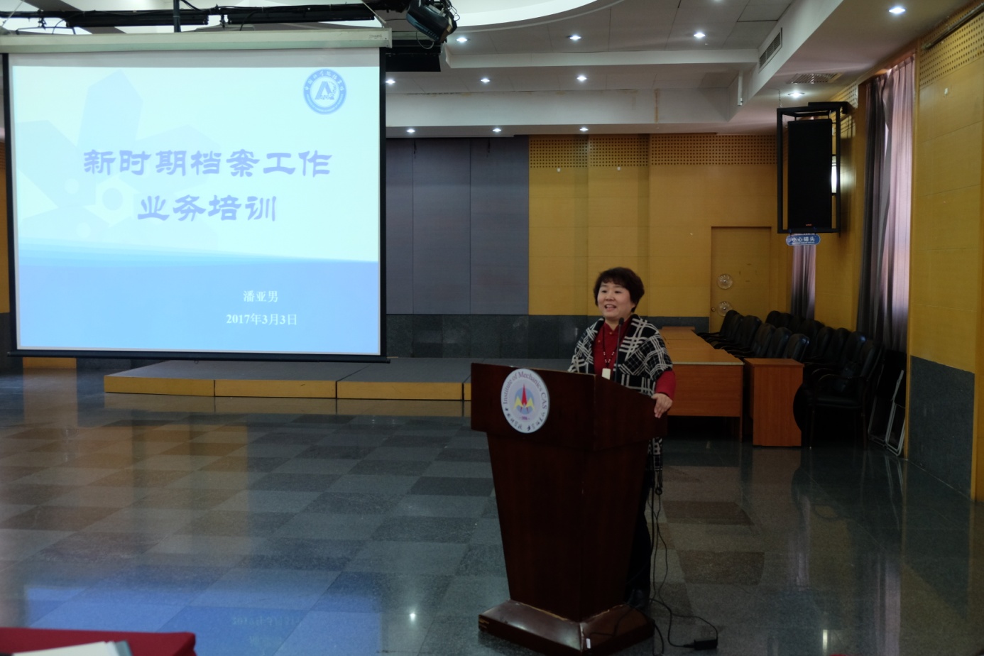 潘亚男在“新时期档案工作业务培训”的报告中,重点讲解了国家对新时期档案工作的新要求、新任务和我院档案工作的新形势、新要求和新任务。面对新要求,强调依法依规开展档案工作,加大档案收集归档力度,加强档案人员队伍建设,完善投入机制。《中国科学院“十三五”档案工作发展规划》强调要推进院所两级档案管理体系;着力推进数字档案馆建设,加快档案工作升级转型;加强重大科技项目档案资源建设;深化档案资源开发利用;并继续做好传统档案收、管、用等各项工作。进一步规范、夯实档案工作,实现依法治档、规范管档,全面提升档案工作水平。