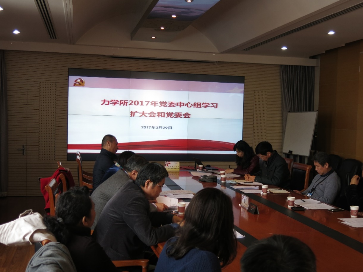 3月29日,力学所召开2017年第二次党委中心组学习会。党委书记刘桂菊、纪委书记戴兰宏、副所长尹明、部分党委委员分别做主题发言。所长秦伟、全体党委委员及各党支部书记等30余人参会。会议由刘桂菊主持。