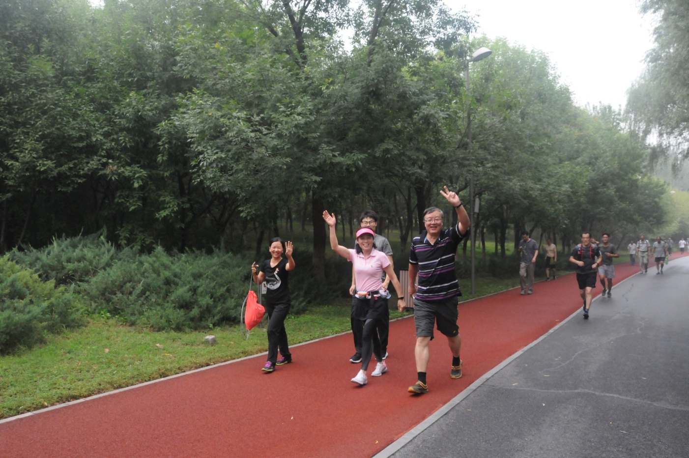 活动队伍自奥森公园南园南门出发,绕行一周,约5公里,历时1小时左右,全程共设置5个记录点,由工作人员在每个记录点为大家发放“喜”“迎”“十”“九”“大”五个不同的字帖,集齐5个字帖即可领取奖品。大家健步如飞、奋力前行,有的三五结伴,共享美景,有的倾心交流,畅谈趣事,参加活动的同志们像一个大家庭一样簇拥在一起,许多同志纷纷拿出手机,有自拍,有合影,留下一个个美好的瞬间。