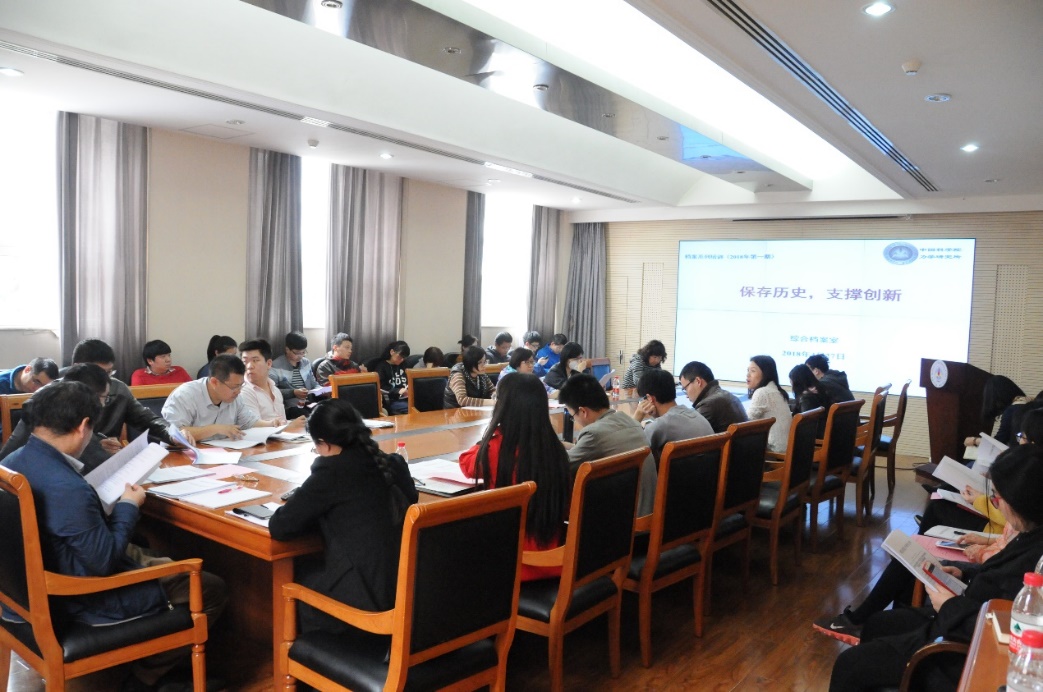 综合处宋金颖对档案管理相关的规章制度进行了解读,明确了各门类档案的归口部门,重点讲解了科研档案和设备档案的建档要求和各阶段收集范围,着重介绍了先导专项档案收集范围。与会人员还就各类档案问题进行了交流。
