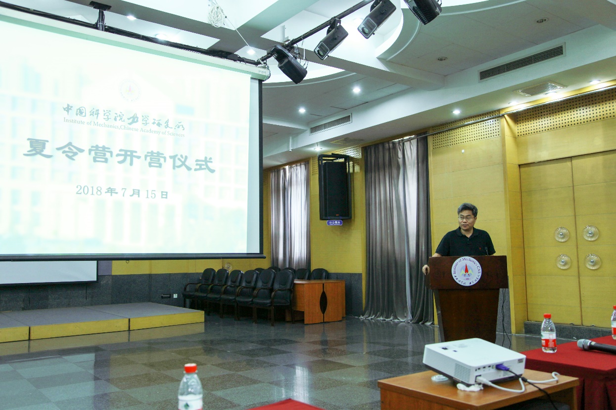 开营仪式由研究生教育与工学院办公室王晓红主任主持。仪式上,纪委书记、所学位委员会主任戴兰宏同志致辞,对来自全国各高校参加夏令营的营员们表示欢迎。他说,力学所是以钱学森先生“工程科学”思想建所的唯一的综合性国家级力学研究基地,在力学界享有盛誉。在新的历史时期,力学所瞄准国家重大需求,承担国家重大科研任务,不断取得国际一流水平的科研成果,为我国的经济建设和社会发展做出了重要贡献。同时,他还鼓励营员们珍惜夏令营的机会,走近力学所、了解力学所,并真诚地希望同学们能加入我们大家庭中来。