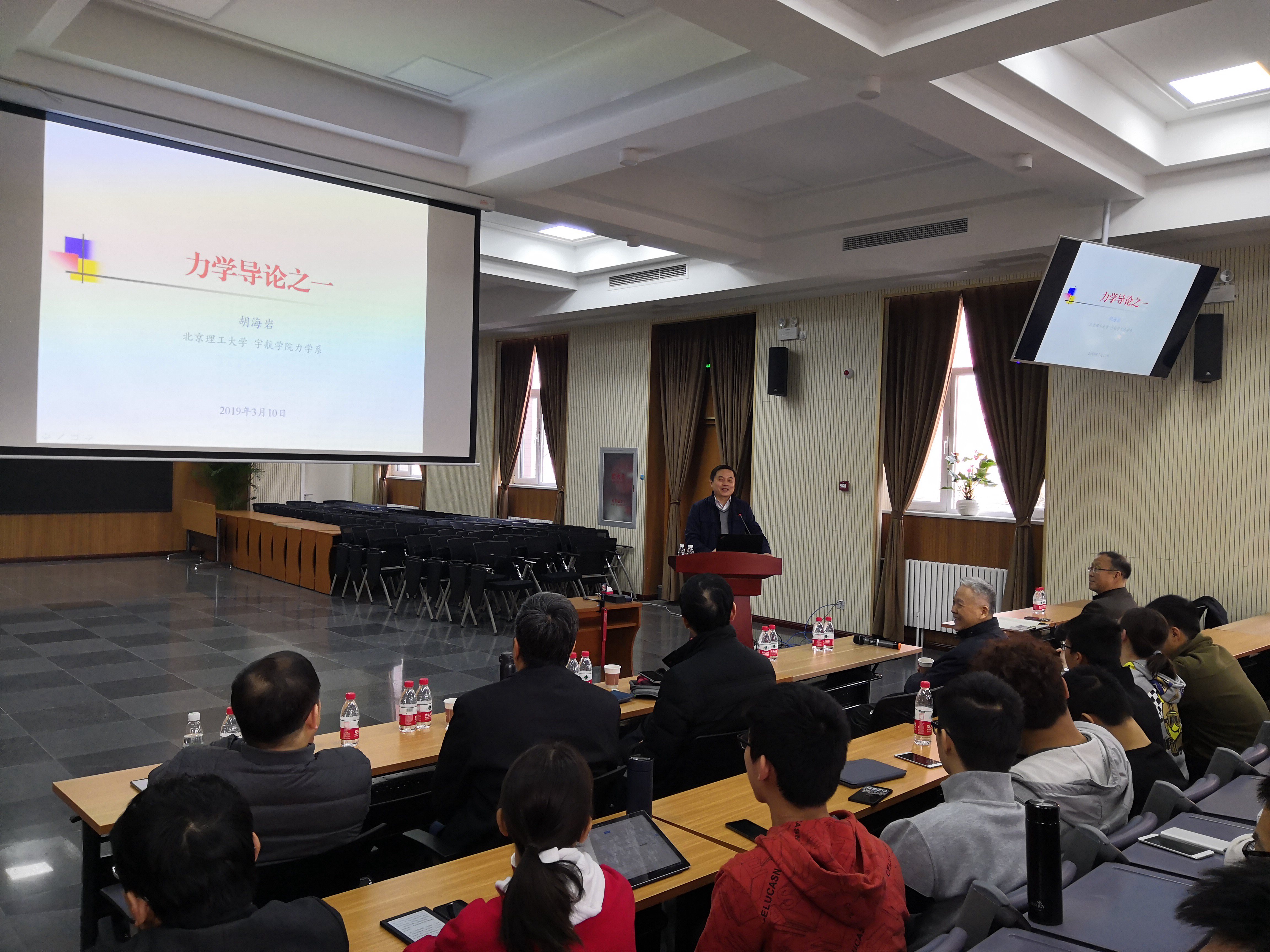 3月10日,北京理工大学胡海岩院士受邀为我所本科生和研究生做题目为《力学导论》的讲座。力学所李家春院士、戴兰宏研究员、魏宇杰研究员、魏炳忱研究员、姜宗林研究员、赵亚溥研究员,国科大倪明玖教授等120余人参加了本次讲座。讲座由李家春院士主持。